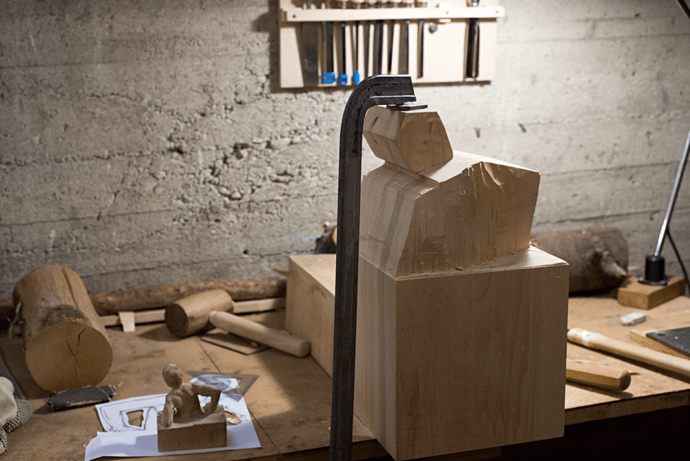 I hand-carved this sculpture using chisels from a lime wood block composed by two jointed planks. “Limiti” represents a man who emerges from a cube, a perfect solid that symbolizes the condition of existential limits. To realize this sculpture I started thinking about perfection as a limit or as a human illusion, inside which we are led to build our world. In this vision, looking for perfection is confronted with natural human imperfection; perfection, as a limit, keeps the man enclosed within walls, unable to move, or, still, crystallized in a defined space. A man has found the strength to go out, creating a crack in geometric perfection (creation of a divergent thinking).
